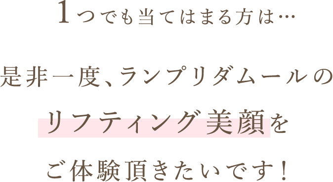 こちらのコースを基本として、おひとりおひとりのお悩みの箇所を 最大限に改善できるよう、重点的に行っていきます。 ![]() これらを確認しながら、細かくオーダーメイドの施術をしてきます。 皮膚の土台となる表情筋からしっかりと鍛え、あなたのお顔本来が もつハリ・弾力を戻していく施術をさせて頂いております。 |